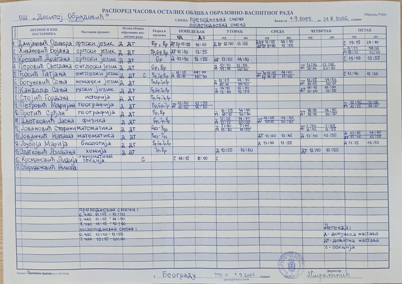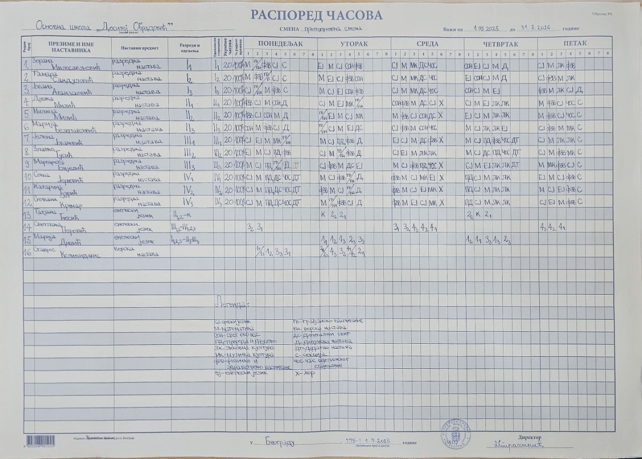 Имамо директорку, наставнике, педагога и психолога који су ентузијасти у свом послу и пружају подршку ученицима на важном путу учења и одрастања.