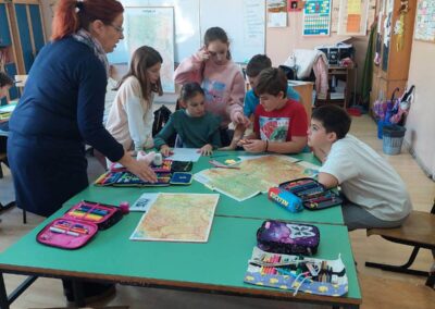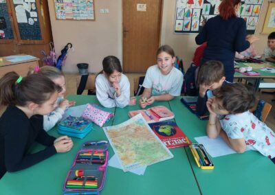 Угледни час-  „На скривено те водим место“ Корелација разредна настава и географија. Ученици 4-1 разреда имали су прилику да на другачији начин понове стечена знања из природе и друштва, као и да се упознају са нечим новим – проналажењем географске карте. На почетку часа, групе су добиле ребус који су требали да реше. Уз помоћ атласа и физичко-географских карата, као и картографских знакова, ученици су откривали шта се налази поред тих места и планина које су добили као појам. На крају су као група упознали све нас са оним што су пронашли на карти. Сви су били видно узбуђени и уживали су на часу којем су присуствовали.