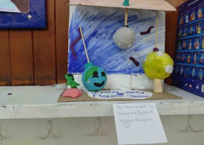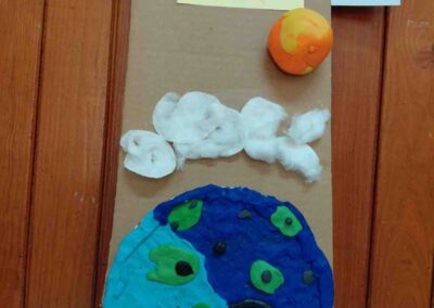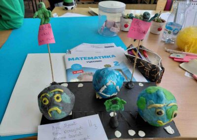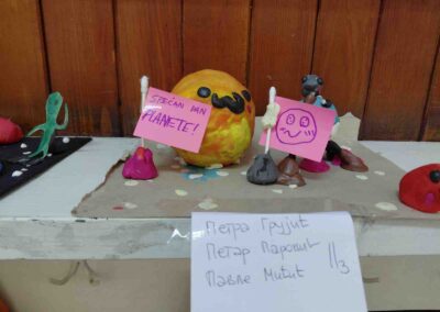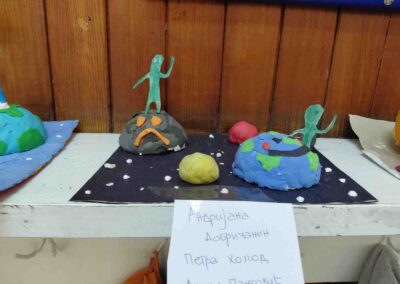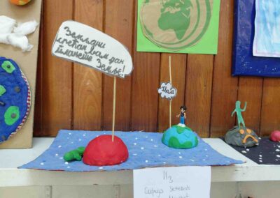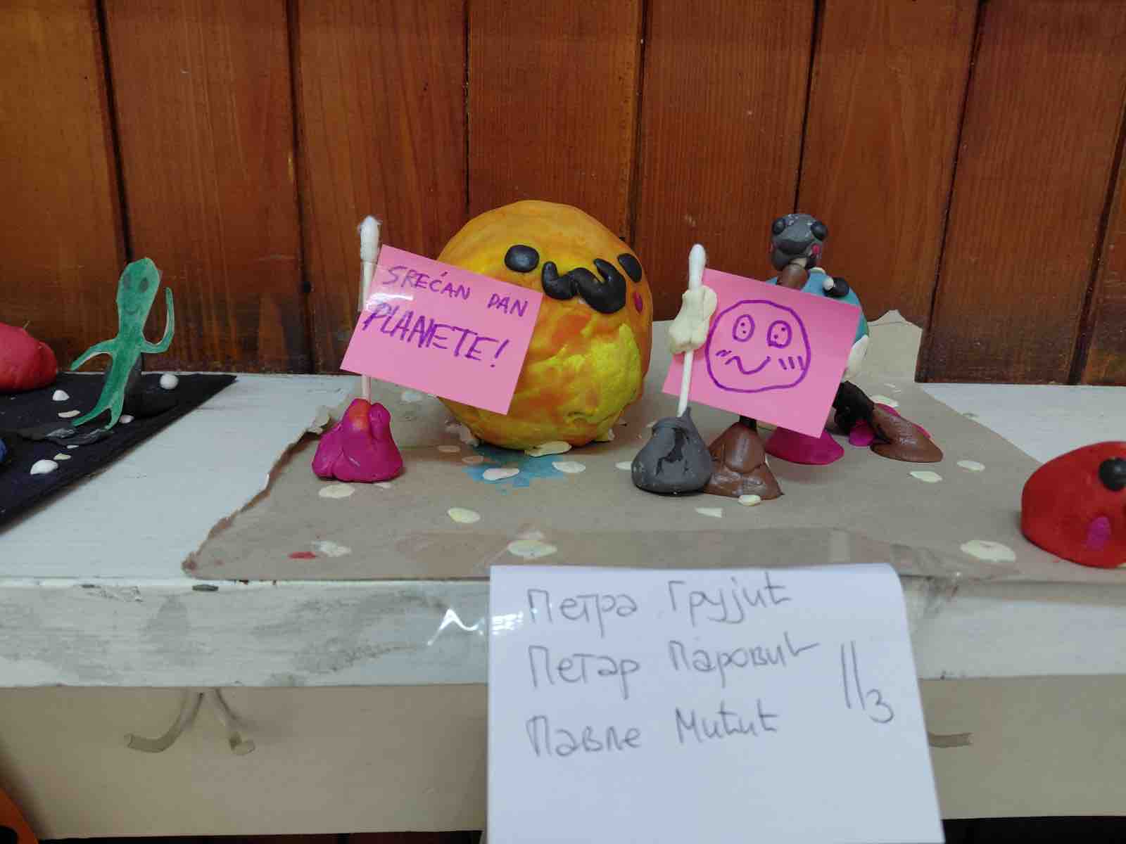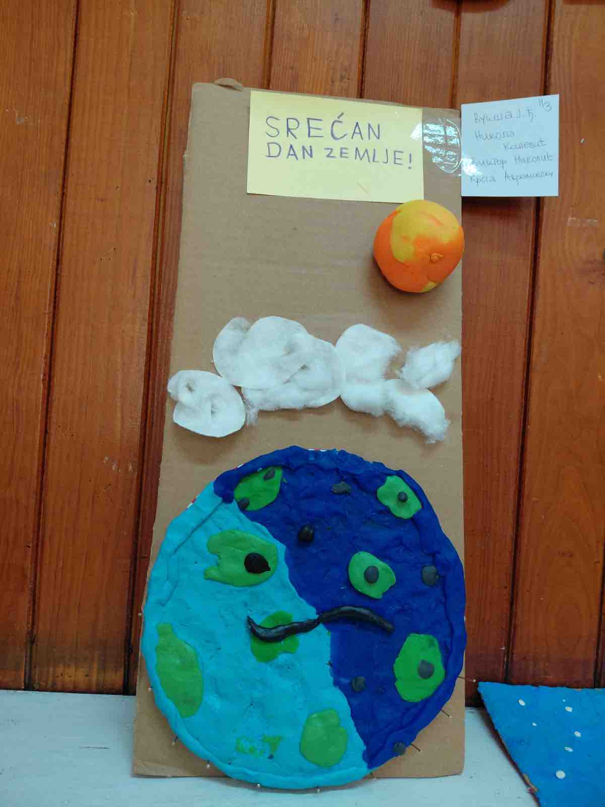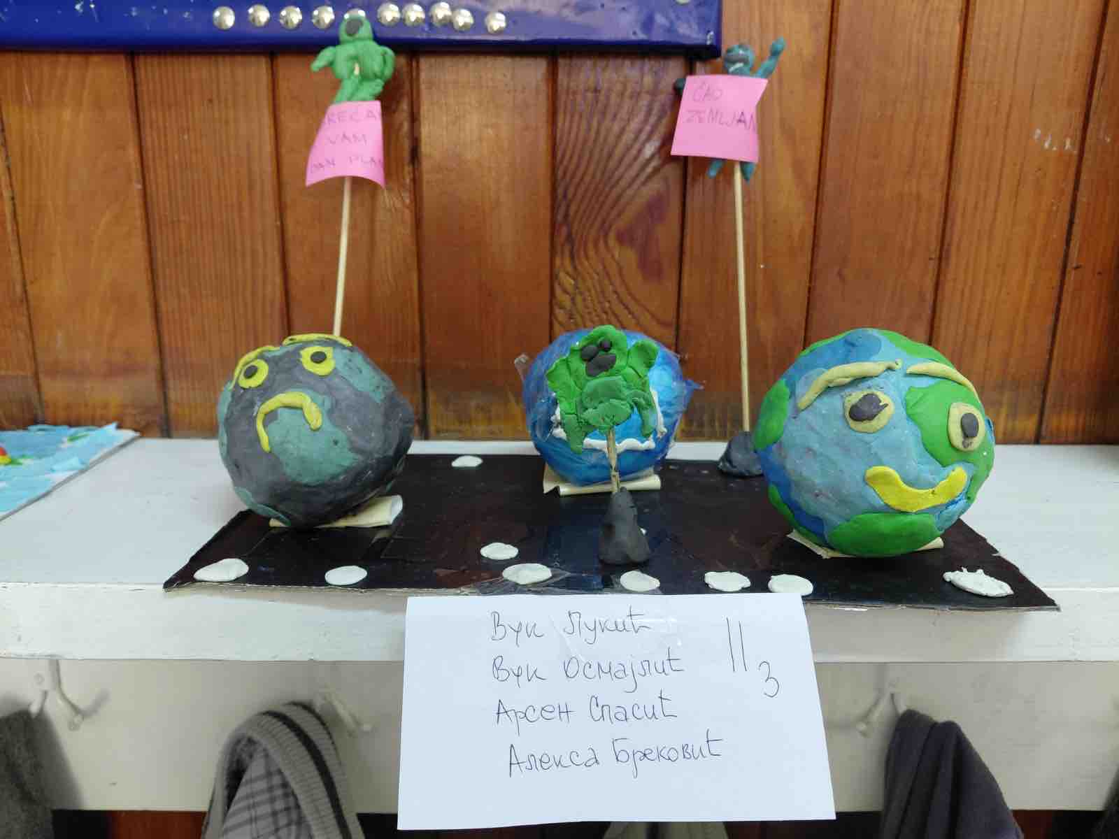 На часу ликовне културе, ученици 2/3 су у оквиру теме Облици у простору, моделовани планету Земљу и остала небеска тела. Групним радом су дочарали своје виђење наше планете и тиме смо обележили њем дан.