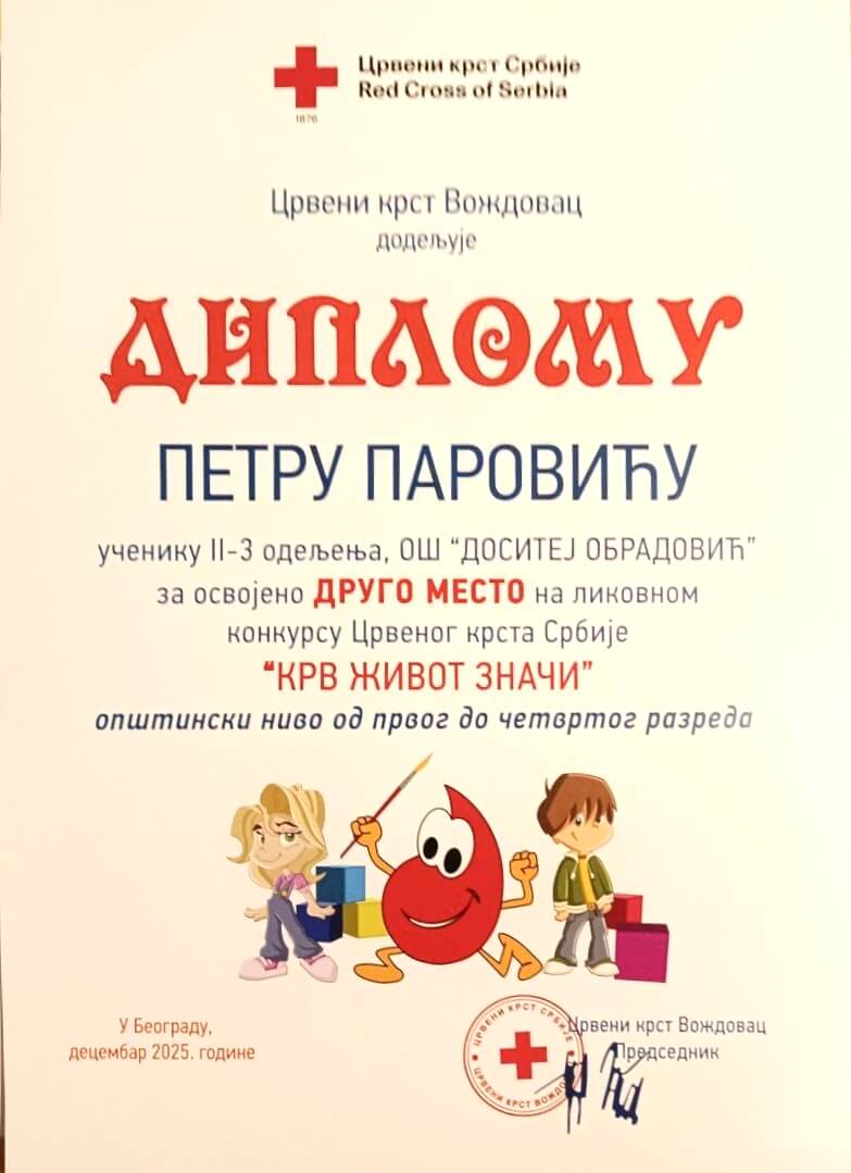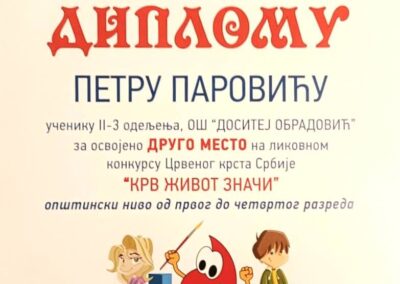 Ученик Петар Паровић 2/3 освојио је 2.место на ликовном конкурсу Црвеног крста Србије