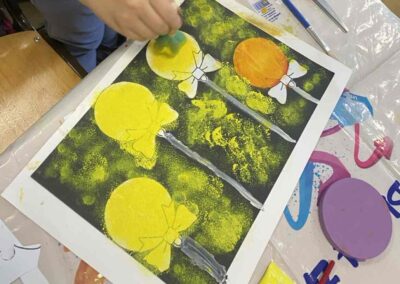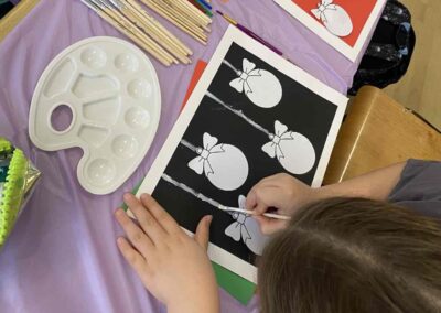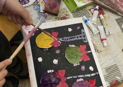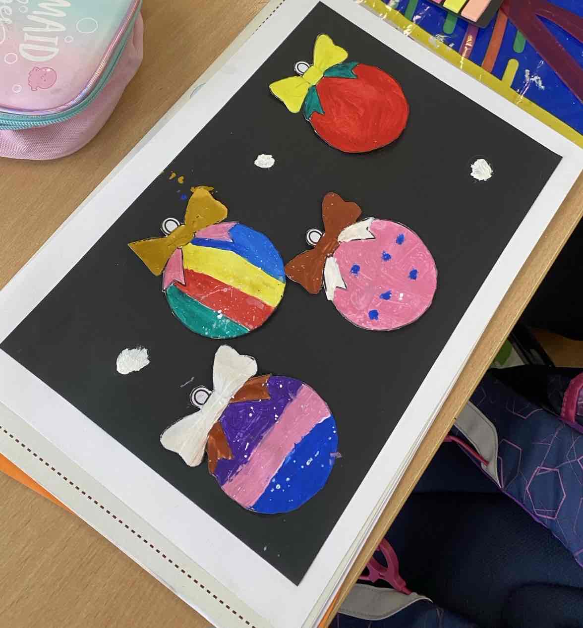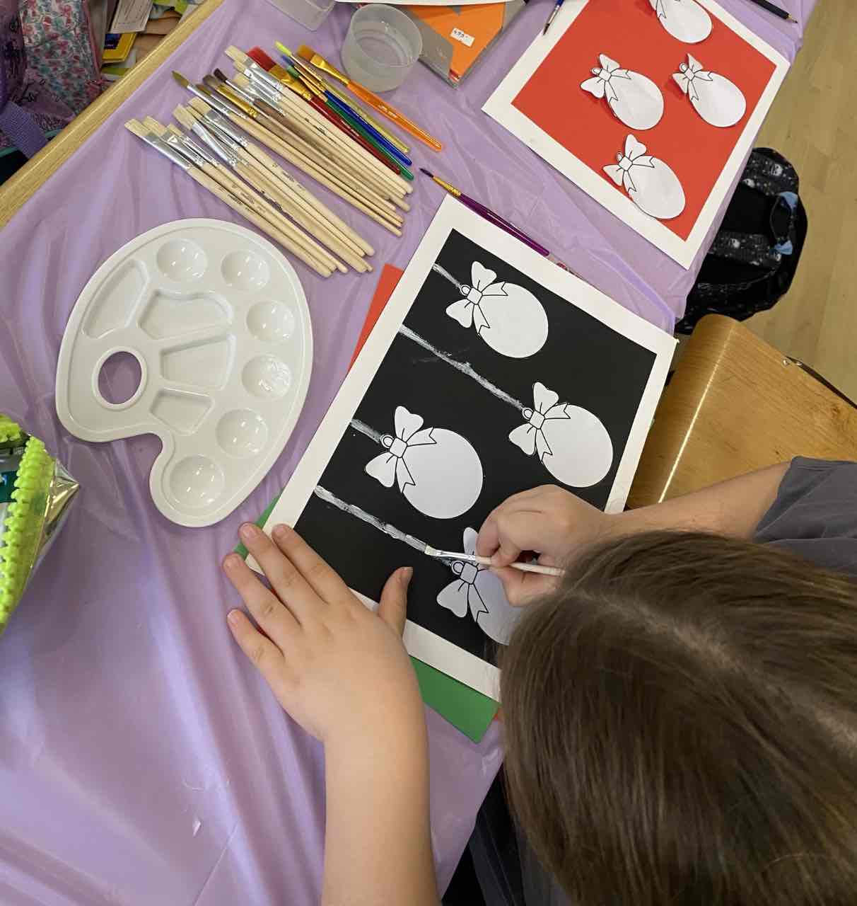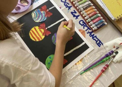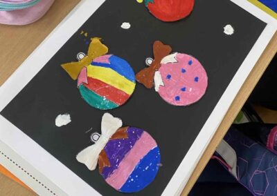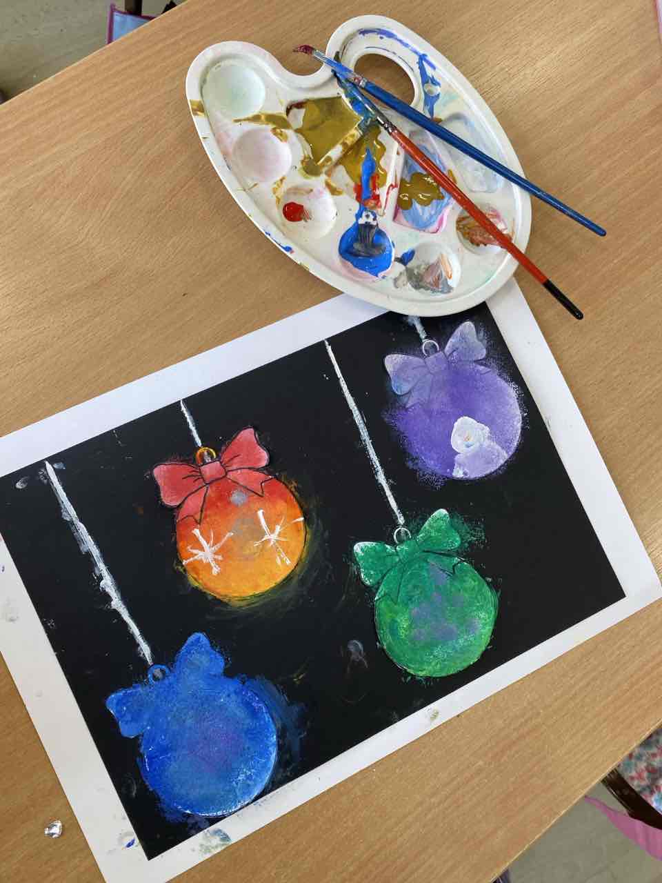 На секцији креативни кутак, ученици су се опробали у техници сликања акрилним бојама, инспирисани празничном атмосфером. Настали радови красе школски простор и преносе радост предстојећих празника. 🎄