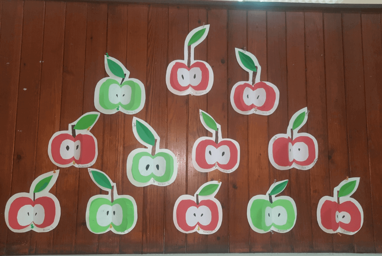 Ученици другог разреда су на часу секције Креативна радионица направили црвене и зелене јабуке од папира.